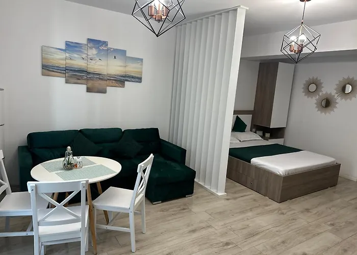 Studio Mamaia-Nord Iuliana Năvodari, di 46 m², si trova inoltre a soli 650 metri dalla Plaja Mamaia Nord. L'appartamento vanta una terrazza e un parcheggio privato gratuito all'interno della struttura.